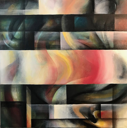 Waren voorheen het water, het land en de oevers haar inspiratiebron nu is het de abstractie zelf die haar uitdaagt. De abstractie van het leven, de ruimte en de tijd. Een zoeken naar ordening zonder wetten en regels te kennen, zonder te weten, alleen op gevoel en ervaring.