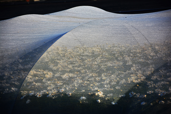 In het begin van het Corona-seizoen in maart 2020 zocht Ute Hille de nabijheid van de natuur om grote ruimtes, oppervlakken en structuren te ontsluiten. Waar zij eerst vaak in steden de mens en zijn verhaal fotografeerde ging ze nu een veld in met grote tuinen en daar zag zij een wereld van netten, rijen, ritmes en vlakken. Dat inspireerde haar.