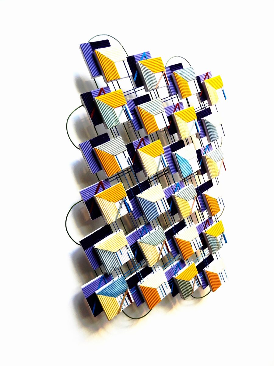 Margriet van Engelen verrast de toeschouwer door haar geometrische objecten ‘in een ander licht’ te plaatsen, met behulp van spiegels of licht- en schaduwwerking.