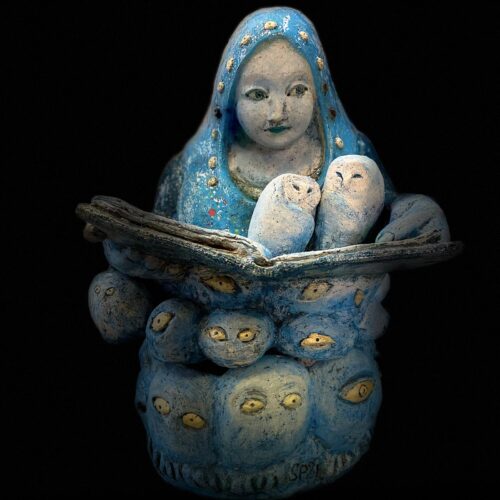 Sanne Pöyhönen- Mijn serie, getiteld ‘De Krachtige Dames’, bestaat uit mythische vrouwelijke personages die verbonden zijn met hun krachtdieren. De kracht van deze verbinding schuilt niet in overheersende krachten, maar eerder in hun aanwezigheid. Voor mij verwijst ‘In Haar Kracht’ naar een innerlijke bron in ieder mens – een plek waar kwetsbaarheid, weerstand en verbeelding samenkomen. Mijn sculpturen tonen geen vaststaand ideaal, maar een dynamische toestand: een kracht die voortkomt uit dragen, volhouden en worden. Ze nodigen de kijker uit om kracht te herkennen, als iets dat van binnenuit groeit, stil maar onmiskenbaar.
