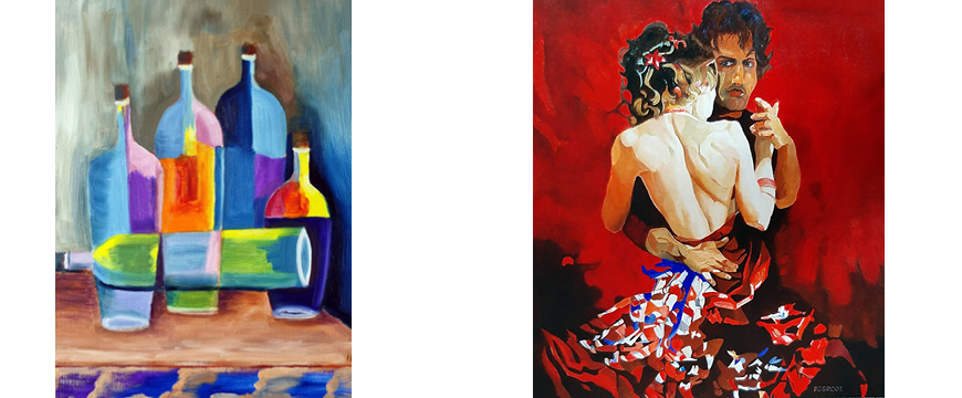 Ook van Peter Groot gaan we schilderijen zien. Hij werkt meestal in acryl, in een stijl die romantisch impressionistisch aandoet. Het werk is opgebouwd uit vlakken en vlakjes, soms figuratief, dan weer abstract.