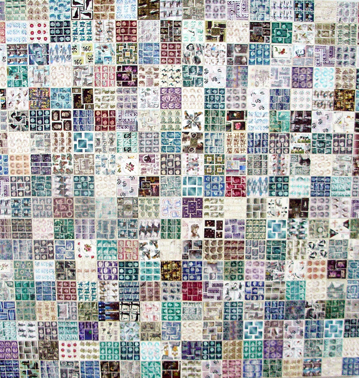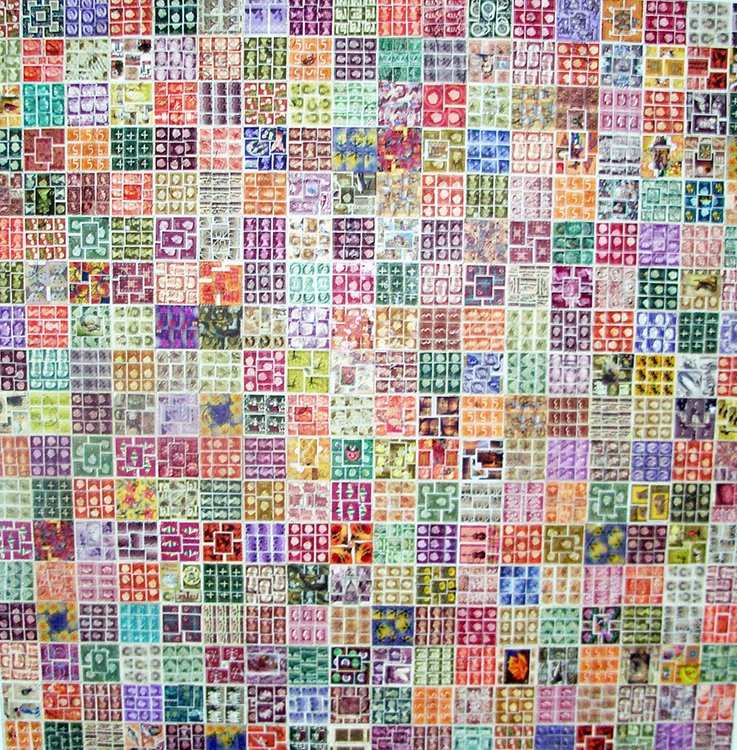 Om sfeerbeelden van de natuur en de jaargetijden te maken is hier gebruik gemaakt van postzegels. Naast de ongelooflijke hoeveelheid kleuren verwijzen ze ook naar een recent verleden, waar we nog handgeschreven brieven en kaarten verstuurden. Veel van de postzegels hebben een lange reis achter de rug, zowel in afstand als in tijd. De postzegels zijn ook dragers van informatie over landen en valuta die soms van naam zijn veranderd, staatshoofden die zijn opgevolgd door anderen. In de collages zijn soms postzegels met strijdige informatie naast elkaar gebruikt, niet om een oordeel te vellen maar slechts om het kleurbeeld te versterken. Al het werk is gemaakt van gerecyclede materialen, de postzegels zijn allemaal gedoneerd door verzamelaars die een deel van hun verzameling hebben afgestaan.