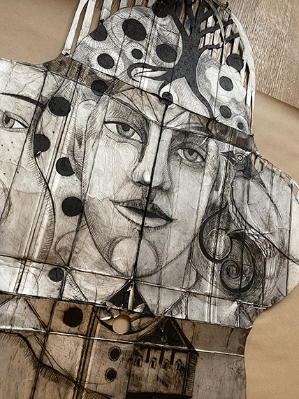 – Maakt al bijna 20 jaar beelden van keramiek en steen en sinds 7 jaar collages van papier (analoog).