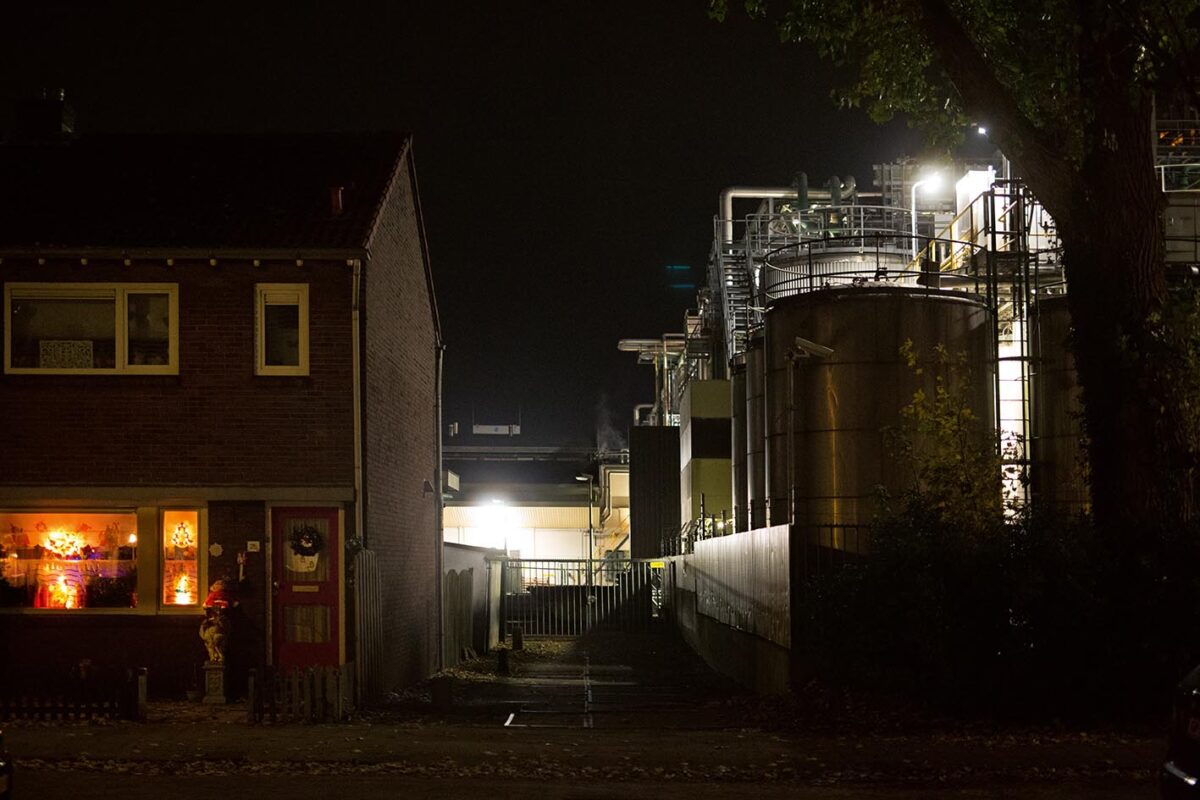 ‘Toen David en ik hier ongeveer tegelijk kwamen wonen, verbaasden we ons ontzettend over de manier waarop de mens en het mensenwerk samenkomen. Het contrast tussen de oprukkende woningbouw en de nog altijd aanwezige industrie vroeg erom vastgelegd te worden.’ Bert Verhoeff