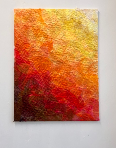Haar abstracte sculpturen, gemaakt van glanzend, kleurrijk en transparant organza, vangen het licht op een verrassende manier en veranderen voortdurend van uitstraling – afhankelijk van waar je staat, hoe je kijkt, en hoe het licht valt.
