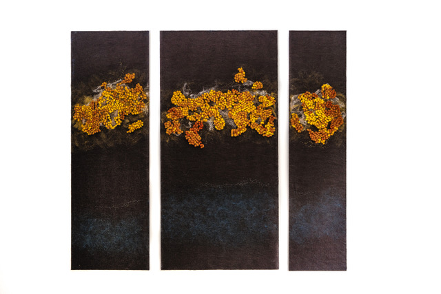 Astrid Oosterhuis is dit in de loop van haar leven gaan ontdekken en nog iedere dag geboeid door de veelzijdigheid hiervan. Aanvankelijk vooral met geweven stoffen maar nadat ze wol heeft ontdekt, is dat haar favoriete materiaal. Ze vervilt het tot abstracte wandobjecten of sculpturen die gaan over haar fascinatie voor groei, ontwikkeling en verval… ons bestaan.