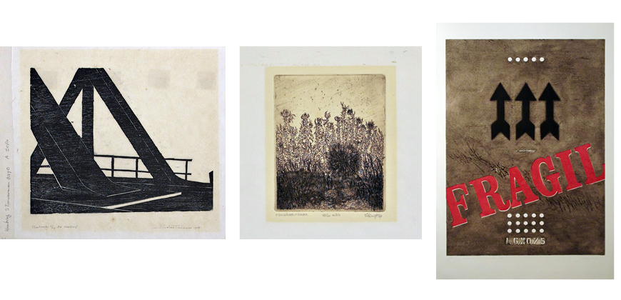 Selma Timmerman, De Hembrug (1983), houtsnede, 28,5 x 48 cm